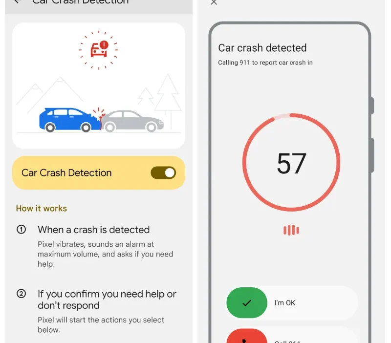 از اندروید ۹ (سال ۲۰۱۸) گوگل یه قابلیتی رو به اسم Car Crash Detection معرفی کرد که فعلاً فقط روی گوشیهای پیکسل (از Pixel 4a به بعد، شامل Fold) در دسترسه. این ویژگی بخشی از اپ Personal Safety هست که با گوشیهای پیکسل عرضه میشه و از اندروید ۱۲ به بعد هم روی مدلهای قدیمیتر مثل Pixel 3 کار میکنه، اما هیچوقت به صورت رسمی به گوشیهای غیرپیکسل نیومده.